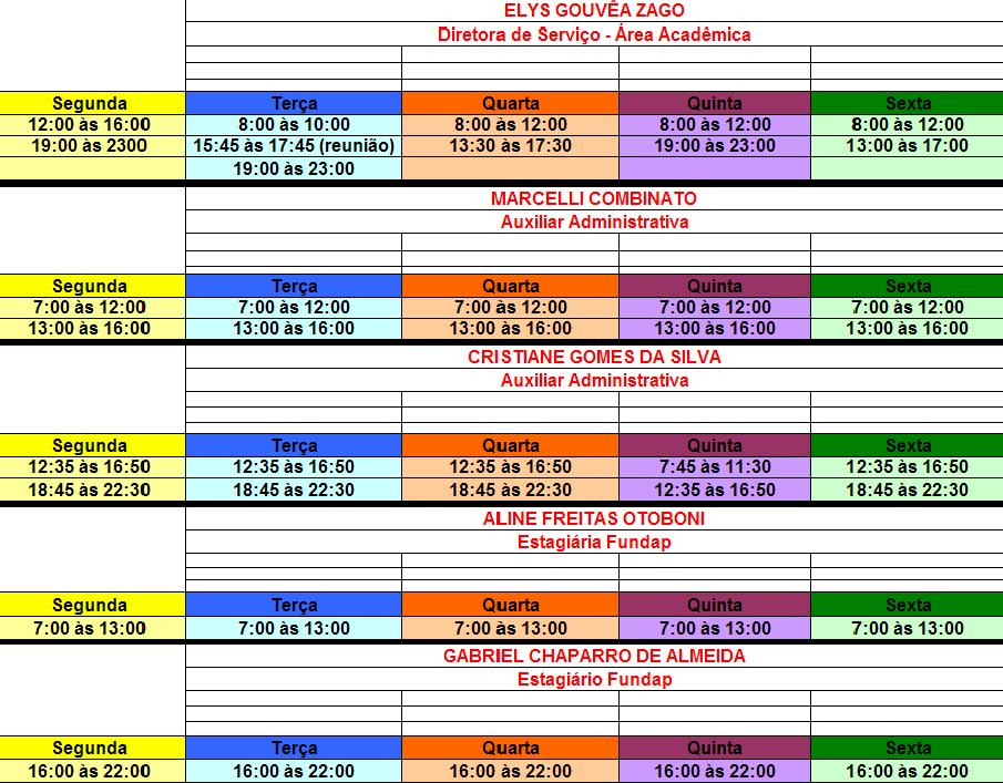 Horário de Trabalho Funcionários da Etec
